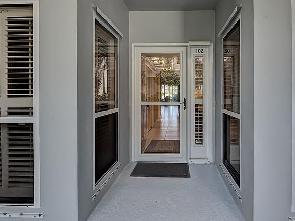 Why live in a small house w/ no view when you can live in this renovated waterfront condo with dock? Updated kitchen & bathrooms, plantation shutters, enclosed & screened porch adds approx. 230 sq. feet to living space, 2 car tandem garage w/ extra closet, crown moldings, pet requires board approval. Inspection report avail. Sizes are approx.& subject to error.