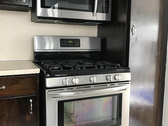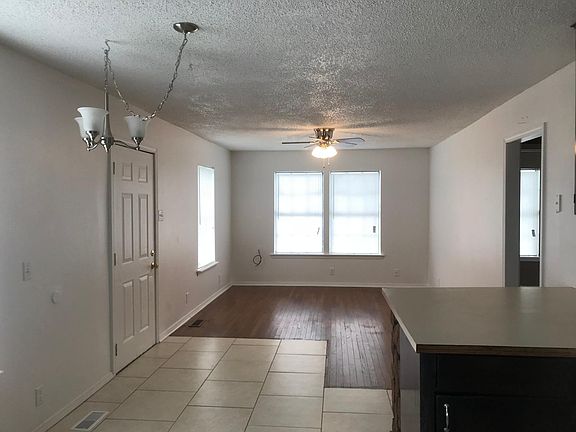 BEAUTIFUL corner lot house in quiet neighborhood. The exterior of the house is rock and siding. Nice size backyard with a chain linked fenced. Also in the backyard is a storage building with electricity ran to it and a roll up door, perfect for lawn mowers. The front door has a screen door. Hardwood floors throughout the 2 bedrooms, hallway, & living room. Kitchen, dining area, bathroom, big living room, & laundry room all have ceramic tile flooring. There are new mini blinds throughout the house along with new brush nickel lighting fixtures and new ceiling fans. All the rooms have been recently painted. Kitchen has tons of wood cabinets with brand new brush nickel handles, new stainless steel microwave, new stainless steel fridge, stainless steel gas stove, stainless steel dishwasher, garbage disposal along with a new brush nickel light & new brush nickel chandelier light fixture. Big living room has 15ft ceiling, sky light, ceramic tile flooring, new brush nickel ceiling fan/light & access to the backyard. Nice sized laundry room with washer & dryer and extra storage space. Tenants pay all utilities which include gas, electric, water, & lawn maintence. Ready for cable or internet if desired