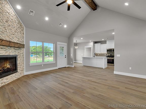 New construction in the desirable Kash Acres development! This 4-bedroom, 2-bathroom home offers an open floor plan with a stunning vaulted ceiling in the main living area, adding both style and spaciousness. The kitchen features quartz countertops and overlooks the living area with a cozy gas fireplace. Luxury vinyl plank flooring flows throughout the home for durability and modern appeal. Energy efficient spray foam insulation and a gas tankless water heater provide comfort and cost savings.