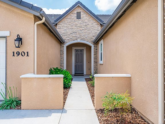 Great location in North Tulare's new Brighton Community at Willow Glen and just a 5-minute drive into Visalia! This gently lived in home is move in ready. Open concept living area opens to the kitchen and dining. Enjoy all your family gatherings. Kitchen with double ovens, gas stove stop, built-in-microwave, dishwasher, matching stainless steel French door refrigerator, you will enjoy the upgraded granite top island with built-in sink. The dining area includes a built-in countertop style buffet with plenty of storage. The living room area, master bedroom and covered patio have been prewired for your home theater or surround stereo system and pre-plumed for your future fireplace. A spacious 4-bedroom 3 bath split wing floor plan takes you to a calming private master bedroom, large master bathroom with a soaker tub, 2 separate walk-in closets, a single French door that leads to the attached covered patio. Indoor laundry with laundry sink and cabinetry includes front load washer and dryer with storage pedestals.