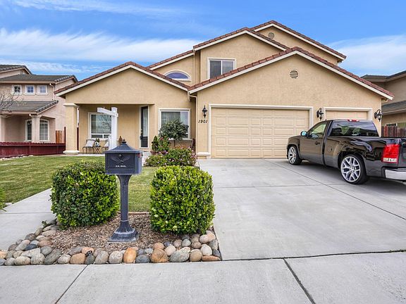 Custom 5 bedrooms, 3 1/2 baths, 2 master suites one on ground floor with large walk-in shower, granite counter tops in kitchen with extra large island, 3 pantry's, custom window coverings, laundry chute, laundry room has sink, Master bath has large jetted tub and separate shower, wet bar in formal dining area, automatic sprinklers in both front and backyard, alarm system, custom retractable screens on front and back doors, Can park up to 2 cars on side of home behind gate, patio cover in backyard and fully landscaped, multi-zone A/C and whole house fan, gas starter fireplace, ceiling fan in master and family room, finished garage with high ceilings.