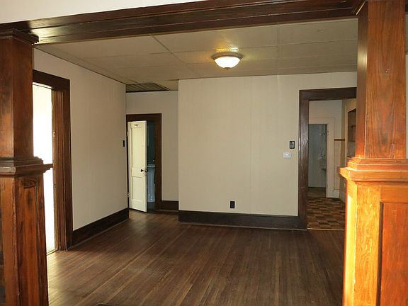 3 bedroom, 1.5 bath bungalow located in a quiet neighborhood close to town square, post office, church and two blocks from Dollar General Store has had many recent updates. New paint inside & out, newer furnace & a/c, newer roof, new windows, large front porch and smaller deck with French doors with vinyl clad railing. Home has hardwood and carpeted floors. Property features off street parking and a concrete parking pad which could provide an opportunity to build an attached garage. Basement level has a 10x42 garage with a concrete ceiling and also has another small bathroom with stool/sink area. Has a small front yard and a small back yard for easy lawn care. Come take a look at this bungalow that has over 1500 sq. ft. of living space.