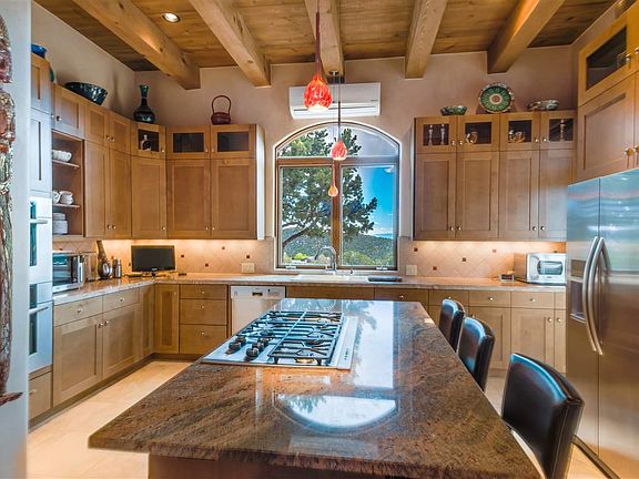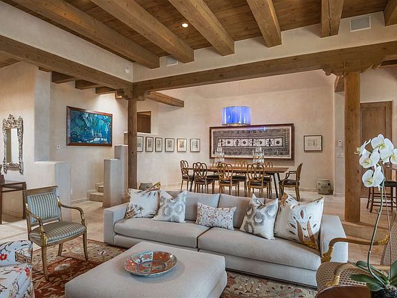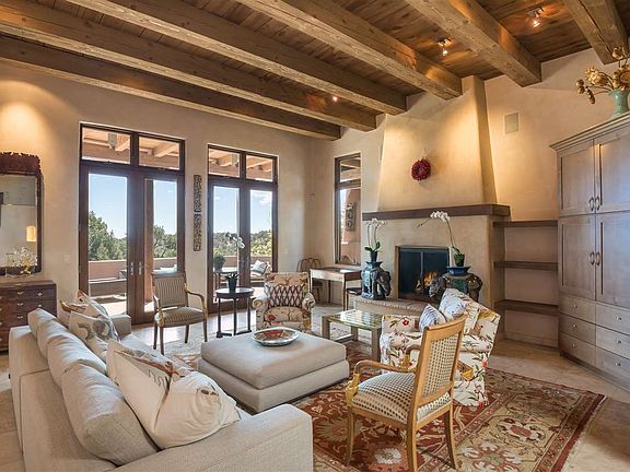 Privacy and Seclusion to Captivate the Soul... If your spirit needs some rejuvenation, then this is the place for you! This uniquely sited home captures the true essence of Santa Fe. Situated on a lovely view lot in exclusive Cerros Colorados, the zen-like qualities of this light and bright 3 Bedroom home provide spacious and open living, dining and kitchen areas with soaring ceilings and ample windows to let the outside in. The master bedroom suite is something straight out of a romance novel. Watch the moon rise over the mountains from your jetted bath or enjoy a romantic dinner from your private patio. The great room opens to a sweeping patio perfectly suited to entertaining larger gatherings. A fully equipped attached but very private guest house adds an abundance of charm and ambience to an already stunning home. Your guests will never want to leave! This hidden mountain gem awaits!