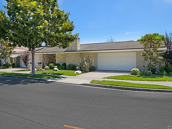 This distinctive home is on a corner lot, across the street from the Irvine Terrace Park and only moments away from the legendary shopping paradise of Fashion Island in Newport Center. Enjoy an indoor/outdoor lifestyle with almost 2400 square feet all on a single level. This mid-century modern home features walls of windows opening to private side and back yards. There are three bedrooms each with their own bath. The open design is sprawling and bright with a custom kitchen opening into the large dining room. An elegant formal living room graces the front of the house. The natural stone hearth is every bit as stylish today as it was when it was built in 1958. As you can see, the home is traditionally styled, comfortable and spacious. The master bedroom has a sitting area and large bathroom with plenty of closet space and a nice vanity area. The master looks out onto the private backyard. A unique feature of this home is TWO two car garages, perfect for the car enthusiast's luxury vehicles, an artist's garden studio or to create an addition. Situated on over 9700 square feet, the lot is beautifully landscaped for privacy and easy maintenance with magnolia trees on the front and side. The backyard has a built-in barbecue bar and shaded seating for entertaining and enjoying the salt air.