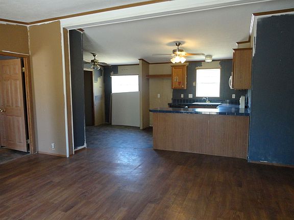 Spacious 3 br 2.5 bath manufactured home situated on over 2 acres! This home offers a open concept, master suite with full bath, laundry room, large deck, over sized attached garage with a half bath and storage , plus a 2 car detached garage . Located in a peaceful country setting not far from town. With a little paint and tlc this could be a very nice home.
