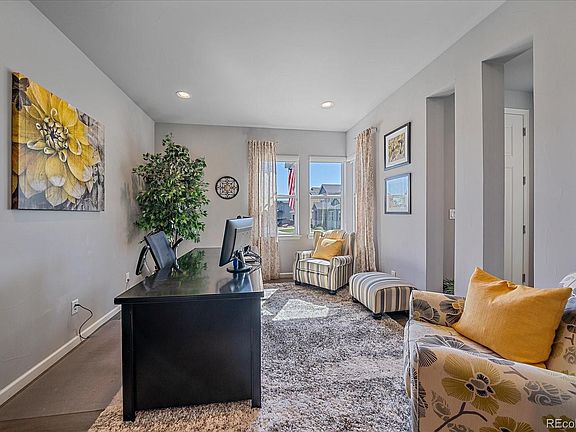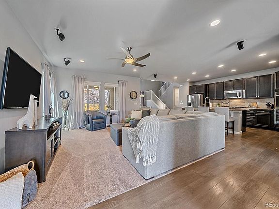 Luxury, comfort, and convenience—perfectly combined in one unforgettable home! This beautifully crafted residence is filled with thoughtful upgrades and custom details, including hand-troweled walls, 8-foot doors, and designer window coverings throughout. The main level offers an office, formal dining room, and a spacious living area that flows into the gourmet kitchen with granite countertops, stainless appliances, gas cooktop, double ovens, a large island, and a pantry. Elegant laminate flooring extends throughout, and a stylish half bath completes the main level. Upstairs, you’ll find three large bedrooms—each with its own bathroom—a versatile loft ideal for a second office or playroom, and a laundry room with cabinetry and a sink. The luxurious primary suite, with a custom barn door, features a spa-like shower with tile inlays, tiled shower pan, overhead rain shower, dual sinks, and a walk-in closet with custom organizers. All bathrooms include upgraded taller, elongated toilets. The finished basement boasts 9-ft ceilings, a spacious rec room, and a wet bar with leathered granite counters, sink, and full-size fridge—perfect for entertaining or as a private in-law suite with an additional bedroom and bathroom. Enjoy built-in Bose surround sound in the living room and loft, plus pre-wiring for audio on the patio and in the garage. Additional upgrades include a new A/C, water heater, and a Class 4 impact-resistant roof that may qualify for insurance savings. The fully finished, insulated three-car garage stays warm year-round and offers excellent storage and workspace. Outside, the professionally landscaped backyard is a private oasis with blooming perennials and a covered patio featuring a ceiling fan, a built-in gas line for grilling, and plenty of space to unwind or entertain. Nestled in a welcoming community near parks, pools, scenic trails, and just minutes from shopping, dining, and downtown Castle Rock—this home delivers elegance, comfort, and connection.
