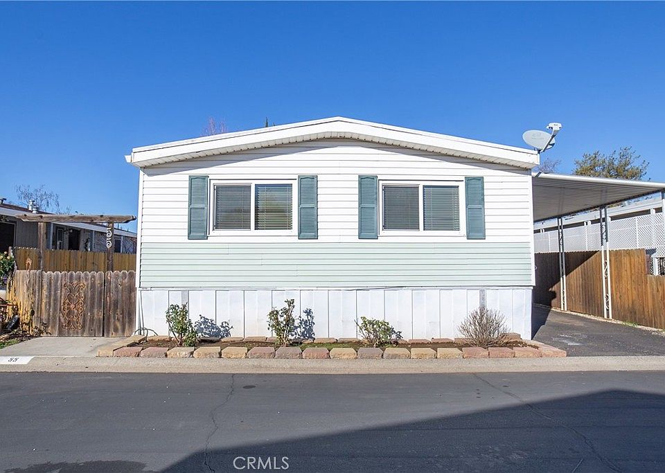 Welcome to the Chico Mobile Country Club, a 55+ mobile home community. This 3 Bedroom, 2 Bath updated and move in ready home feels so bright, clean and homey! When you arrive, you will be drawn to an adorable front patio and covered front porch. Upon entering, you will notice the pride the seller has taken in owning this home. Beautiful built-ins in the living room, ceiling fans throughout, granite countertops in the kitchen and both bathrooms. Both the guest and master bathrooms have beautiful tile walk-in showers. Recessed lighting and a large island in the kitchen. The dining room offers a ton of built in storage. Dining room leads you into a unique sunroom (could serve many different purposes!) that boasts a beautiful tongue and groove ceiling, lots of natural sunlight and has access to the front and back porch. Covered carport, storage shed, large, quiet backyard perfect for BBQ'ing, entertaining or just relaxing. Landscaping includes several different varieties of plants, a garden bed, a mature shade tree and a citrus tree, all on a timed irrigation system. You'll love all of the amenities this community has to offer. A clubhouse with a full kitchen, 2 libraries, game room and gathering area, pool, hot tub, salon, fitness center and laundry room. Contact your favorite agent for a showing!