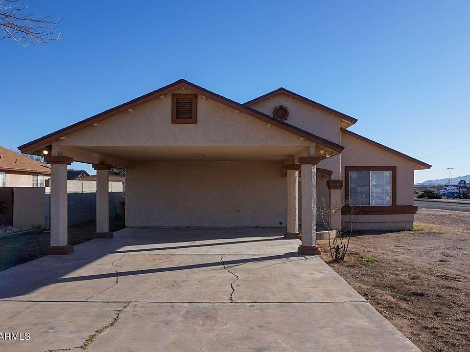 This 3 bedroom and 2 bath has tile t/o and new interior paint. Kitchen has clean white cabinets, new SS appliances with an eat in kitchen. Large living room with dining room. Large primary bedroom with it's own bathroom. 2 car carport and a covered patio in backyard. This home sits on a large corner lot and has solar panels.