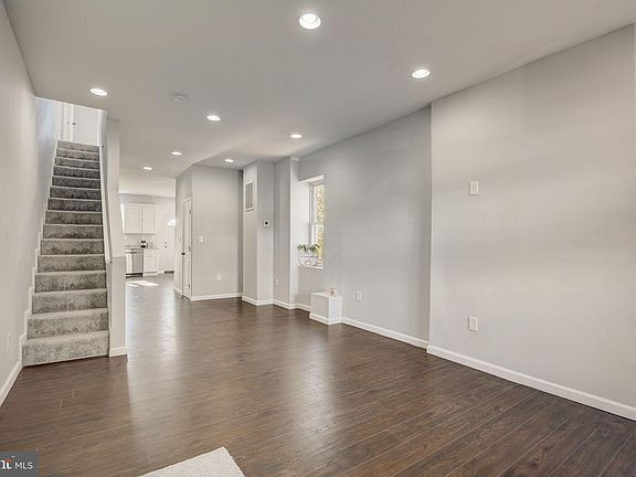 This end unit townhome is conveniently located minutes from multiple universities, hospitals, entertainment, golf, and dining. It is minutes from Johns Hopkins University and Hospital, Morgan State University, and Loyola University. Whole Foods and the Inner Harbor is about 12-13 minutes away! 3 bedrooms, 1.5 bathrooms, an open concept main level with a gorgeous white kitchen and unique granite countertops. New carpet throughout with LVP flooring on the main level. Entertain on the main level, its balcony, or in your finished basement that has a rear entrance. Owner's bedroom has a huge walk in closet with a window. This cool, enclosed backyard has a concrete top for low maintenance. First-time homebuyer incentive is a 65 inch smart tv at settlement! Security system included with paid subscription for up to 1 year! Possible grant eligibility for this home as well!