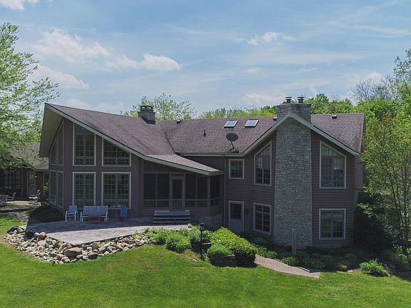 Nestled in the Heston Corridor, on a private golf course is Shallow Creek Farm, is a one-of-a-kind estate designed for country living. The elegant main home has dramatic beamed ceilings, floor-to-ceiling windows and a freestanding stone fireplace in the living/dining area. Generous master suite with fireplace. Custom kitchen and 2 en suite bedrooms for comfortable living and entertaining. 3BR guest house w/kitchen overlooks the golf course with 3 greens and multiple tee boxes spread on a 3250ydcourse rated by IGA. Adjacent pool house has indoor pool under retractable roof. Property also has tennis court. Designer-decorated home is being sold TURNKEY, including maintenance equipment! All this an hour from Chicago & minutes from Harbor Country!