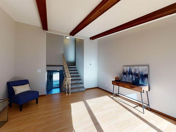 Are you looking for a cute condo with roomy, open features? This could be the one for you. Inside, you will find two bedrooms and two bathrooms. You'll love the cathedral ceilings with desired wood beam accents. There's an open foyer off the attached garage. The large laundry room includes the washer/dryer. The basement could be used as a non-conforming bedroom or family room. Options galore! Fresh paint and carpet make this end unit move in ready. This centrally located property is close to restaurants, schools, shopping, walking paths and so much more! Come see or take the virtual tour.