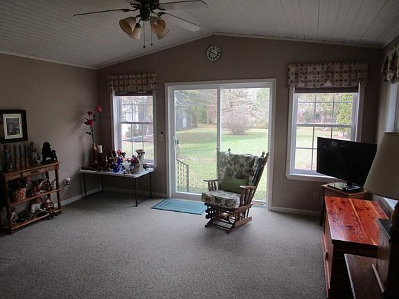 This is it-welcome home!! Up for sale we have 3 bed 2 bath ranch(manufactured) style home. Owners exhibit pride. Wonderfully decorated thru out & clean. Featuring 3 bedrooms and a forth for extra storage. Two full baths. 14 x 16 family room overlooking well maintained grounds. 2010 updated kitchen with skylights - maple cabinets, island and L.G. counter-tops. 2014 roll interior doors are solid pine with raised panels. Composite decking off family room to enjoy relaxing wildlife. Acreage has 2 descriptions for total. Established rhubarb, raspberries and blackberries of with seamless gutters. 2013 newer windows. Whole house generator also.