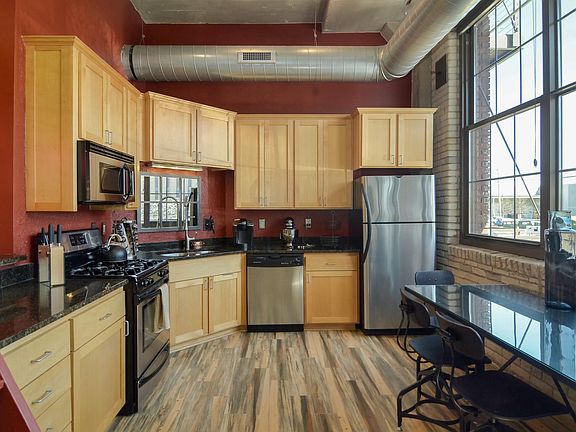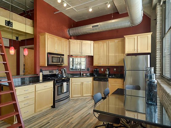 INCREDIBLY efficient and economical housing option! THIS is the condo if you want extremely low expenses and a light carbon footprint without sacrificing style and quality. Think of a "tiny house" without the exterior maintenance! HOA fees are $225/mo which includes water. Gas+electric average $24/mo combined! This address is on several major bus lines, with the U of M just 1.5 miles to the south, and the Quarry Shopping Center 1 mile north. Studio warehouse loft features modern amenities, a private balcony, granite countertops, stainless steel appliances, forced air furnace and AC, 12.5' ceilings, and assigned parking and storage. Exposed concrete pillars and ceilings, exposed brick, porcelain plank hardwood floors and lofted bed give this unit a light and airy atmosphere. Excellent option for investors, or for professionals who need a place near the city. Storage unit is 38"W x 49"D x 95"H. Several restaurants and coffee shops within walking distance--including UP Cafe steps away!