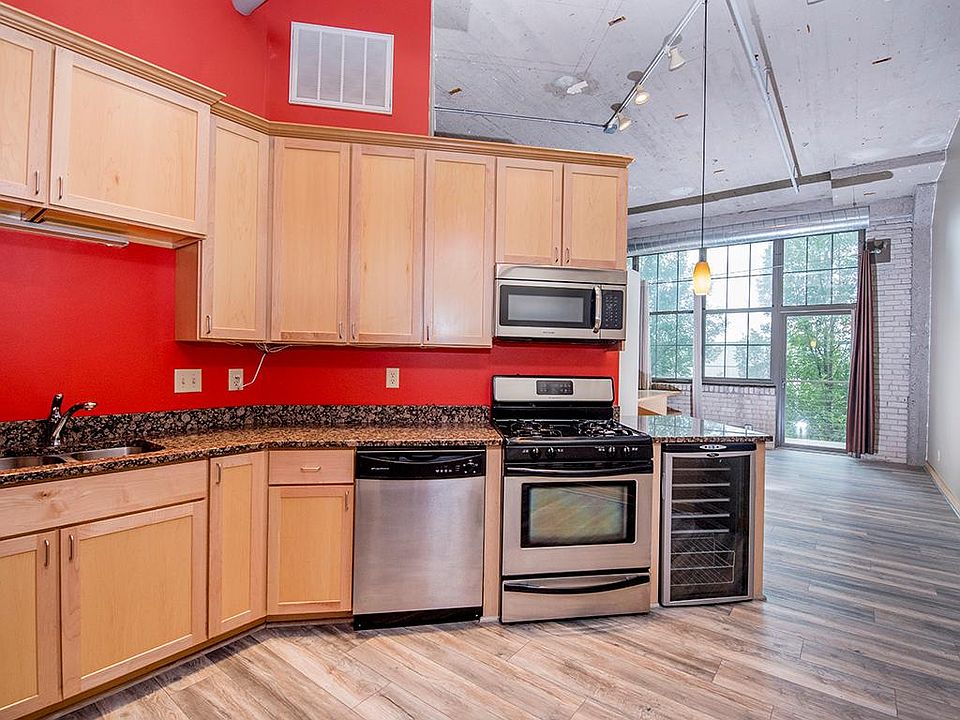 True warehouse loft living in convenient NE MPLS location close to cafes, restaurants, breweries, highways, bike paths & more! 12' ceilings, exposed brick wall & huge windows w/ loads of natural light! Granite counters, SS app's, bonus wine fridge & pendant lighting! New flooring, private deck w/gas line & in-unit washer and dryer! Custom built-in shelving in LR, BR & BA! Custom blinds and curtains! Assigned exterior parking space, storage locker & well-run HOA! Urban living at its finest!