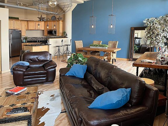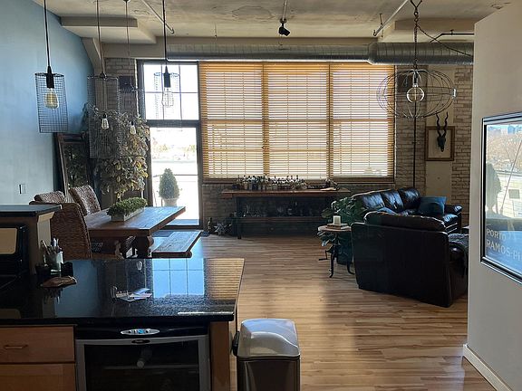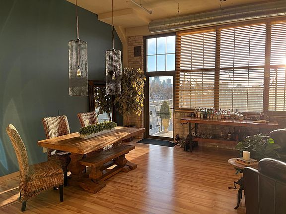 Artful living with a WOW factor. With 12‘ ceilings, walls of windows and exposed brick, this is a true loft with a gorgeous view of downtown in the former Gliden Paint Warehouse Building. You’re just across the bridge from all the city has to offer. The sunsets are amazing from your patio with gas plumbed in for your outdoor grilling! Two parking spots, one surface lot, and one heated underground. Secure building, well planned association. New Electrolux washer and dryer, new dishwasher and microwave. Handmade light fixtures, and artistic touches make this a one of a kind. If you want a unique home, close to fun activities, great place to live and entertain, you must check this out. Soundproofing and concrete floors keeps the unit quiet! Steps to Up Coffee and Norseman distillery, Falling Knife and Insight Brewing and all that the bustling NE side of Minneapolis has to offer.