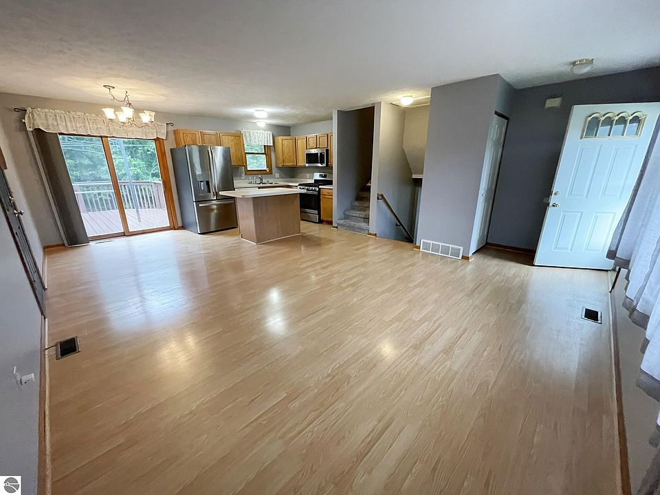 Great home on 1.5 acres only 20+/- min out to TC & in the Kingsley School District for families with kids! Peaceful & with no neighbors on 3-sides, backs up to beautiful stand of hardwoods w/ large deck & yard to enjoy the outdoors, extra paved parking for boats/campers, walkout lower level & more! All specifics/details pertaining to the property to be verified by Buyer/Buyers Agent.