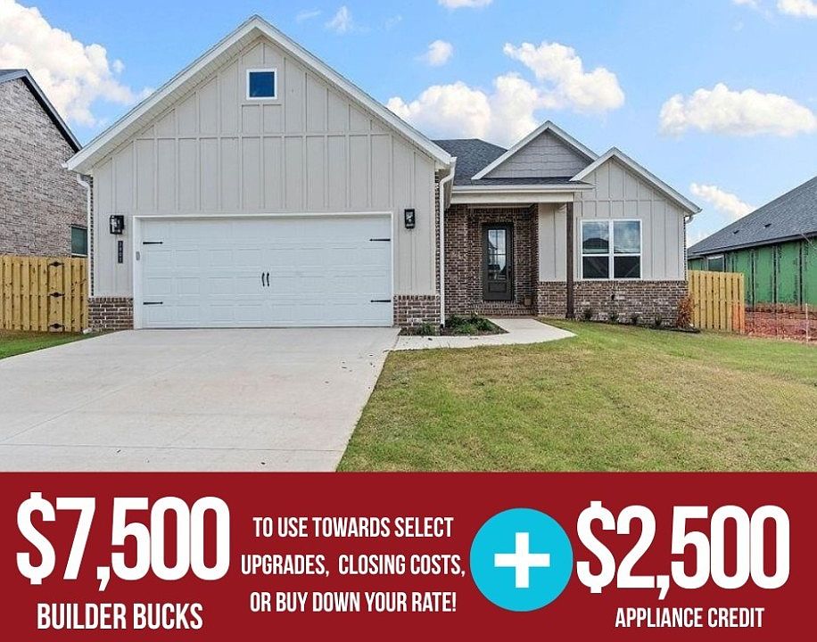 In Pea Ridge, Arkansas, Yorktown Subdivision features homes that cater to diverse tastes and modern living. The Dove plan offers 1,886 sq ft of thoughtfully designed living space in a single-story layout.The modern kitchen features a composite granite sink for lasting beauty and durability, along with a countertop push-button garbage disposal for added convenience. A cozy nook with built-in cabinets, a desk area, and floating shelves provides the ideal workspace or study spot.Enjoy outdoor living on the covered back patio, overlooking a privacy-fenced backyard—perfect for relaxing or entertaining guests. Additional highlights include a spacious two-car garage and elegant finishes throughout, ensuring both style and practicality.