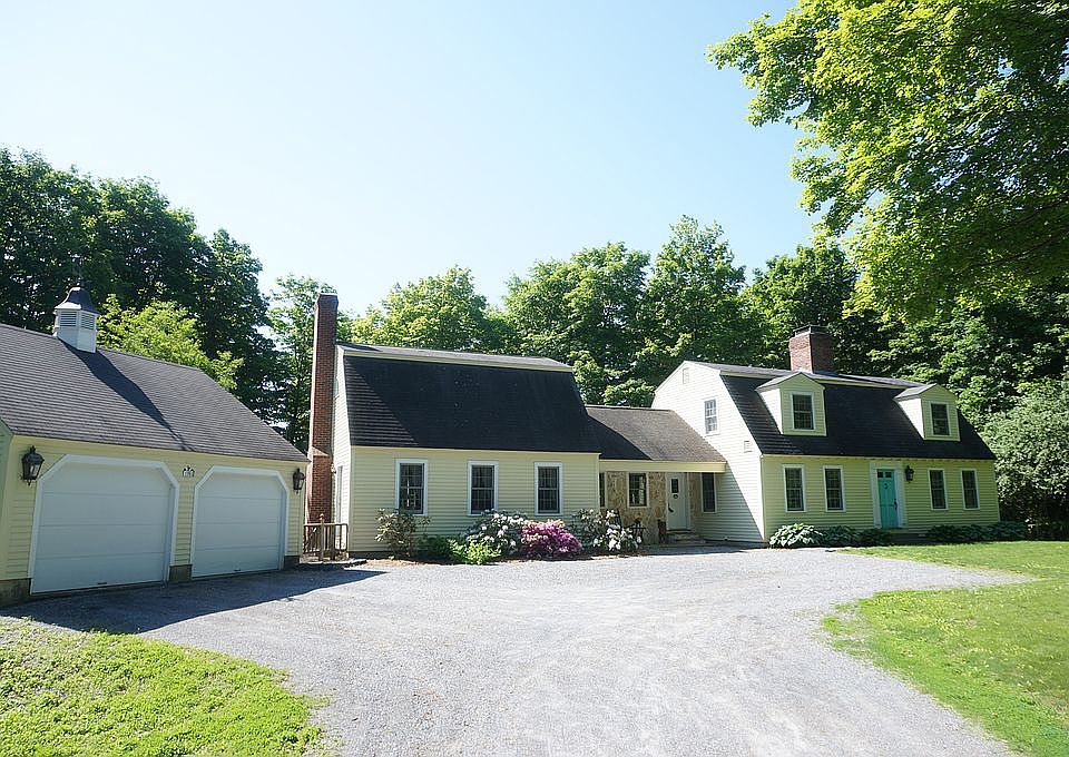 Royal Barry Wills Classic Cape Cod with amazing upgrades. Decorator designed remodeled with master bedroom addition. Sited on 5 acres with pony barn, pasture, woods and great landscaping. The covered Panton stone porch welcomes you into the classy mudroom entry with tile floors, hand painted details and marble half bath. The central kitchen boasts cherry cabinetry, stainless steel appliances, granite counters and a great design for work and entertaining. The kitchen flows into the keeping room with breakfast nook, cozy pellet stove on brick hearth and wonderful pantries. Formal dining room with beautiful faux painted rug on wood floor. Front to back living room with Rumford wood fireplace, box moulding and French doors to the rear deck. The private first floor master suite is outstanding with vaulted exposed beam structure, wood burning fireplace and sliding glass doors to the Panton stone patio. The amazing master bath is a two room suite, one for the double granite sink and the second for the free standing Kohler birthday tub and Jacuzzi tiled shower. Two large bedrooms up with two guest baths (one en suite),both with granite counters . Walkout lower level hosts the family room wired for surround sound, ¾ tiled bath, huge laundry room and utility room. Newer efficient Buderus furnace. Solar hot water. Detached two car garage and a second hobby/studio/garage for your personal pleasure. There is so much to see and enjoy. Make this your new special home!