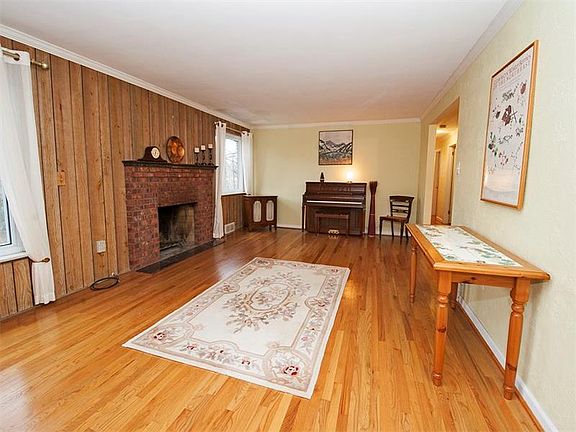 Desired Brick Ranch with covered front porch on a Corner Lot features an Open Floor Plan enhanced by Natural Light from Large Windows. Formal Entry with Coat Closet greets your guests. Gleaming Hardwood Floors and Log Burning Fireplace add to the cozy ambiance of the home. Updated Fully Equipped Eat in Kitchen with an abundance of custom wood cabinets and seating area at the front window. Master Bedroom with full bath and generous closets. Three Full Baths in all with updates. Finished Gameroom with fireplace and wet bar walks out to incredible yard and gardens. Finished Room in the lower level could be a great home office or fourth bedroom. Exceptional Storage. Conveniently located close to Parkway and Route 22. Easy commute to Downtown Pittsburgh, Oakland, and Shadyside, including Hospitals and Universities. Close to PA Turnpike Entrance and Monroeville Shopping and Business District, including Hospital.