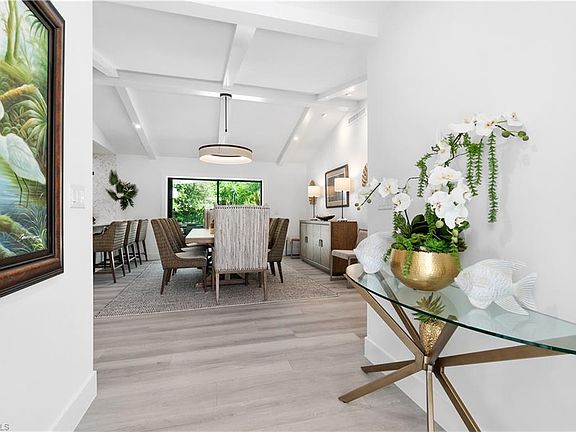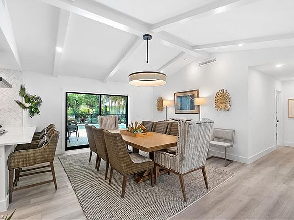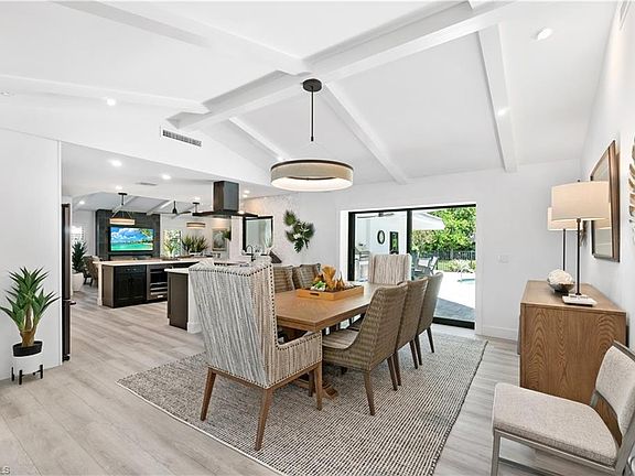 Fully Renovated and Reconstructed creating an Open Floor Plan with Vaulted Ceilings in the Formal Dining Room and Family Room. The centrally located kitchen has wrap around counters offering abundant casual seating with beautiful views of the outdoor living areas that include a Pool, Outdoor Grill Island, Kitchen, and plenty of room for lounging, soft seating, and dining so you can enjoy the Florida Lifestyle. The Split Floor Plan offers a Magnificent Master Bedroom Suite, two well appointed Guest Suites, and a conveniently located Den and Powder Room. Everything is new including Impact Resistant Windows and Doors, Tile Roof, Paver Driveway, Lanai pavers, AC system and ductwork, Kitchen Aid appliances, electrical fixtures and wiring, plumbing and plumbing fixtures, and three electric fireplaces. Conveniently located in North Naples you have easy access to Vanderbilt Beach, Barefoot Beach and Bonita Beach, along with many Fine and Casual dining establishments, Naples 5th Ave South, and RSW airport