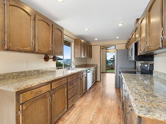 Imagine the possibilities! Lovingly maintained rambler perfectly nestled on a subdividable half acre lot positioned to maximize inspiring Lake Washington and Olympic Mountain views-Walls of floor-to-ceiling windows and vaulted ceilings enhance the open design living and dining room-Charming kitchen hosts granite slab counters & newer stainless steel appliances-Trex entertainment deck overlooks the parklike manicured grounds-Incredible location, convenient to schools, freeways and minutes to The Landing, Coulon Park & Seahawks Practice Facility