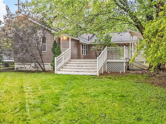 Extremely private house situated in a completely wooded area with a large wrap around porch. The siding, roof, windows and large porch have all been done within the last 10 years. The first-floor bathroom was also updated. The first floor offers a large living area with a family room, dining room, first floor laundry, first floor bathroom and kitchen. Separate entrances lead you to a huge deck with complete privacy. Upstairs offers two bedrooms with a master bath and claw tub and walk in closet area. The property is completely fenced in. The second parcel offers a large outbuilding and garage that with some TLC could make a great man cave, workshop, office and garage. Perfect to be able to store equipment and use garage space and rent the home or make it your own oasis. The home needs some cosmetic TLC, but the bones are great, and the majors have been done for you.