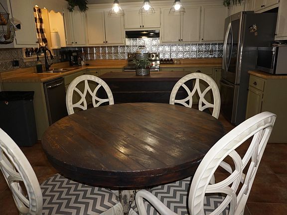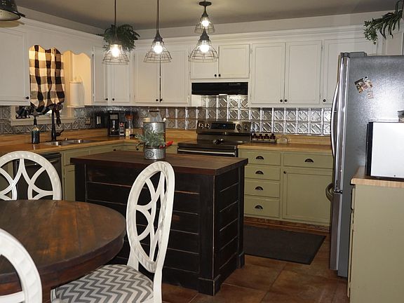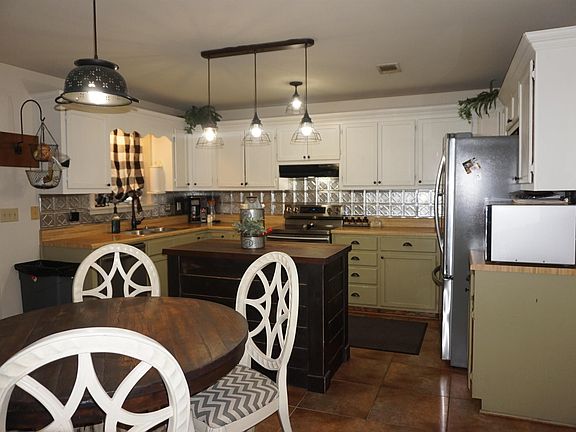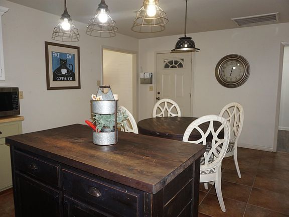 Updated solid brick house with beautiful plank accent walls, light colors throughout, new laminate flooring, large eat in kitchen with tons of cabinets and island with butcher block top. Stainless appliances will stay including super nice refrigerator. Tankless gas water heater, HVAC, garage doors, front porch posts new August 2020. Bedrooms are great size and can hold king size beds. Large pantry room off kitchen and huge sunroom/den off back. Storage bldgs will stay. Nice back patio. Roof new in 2016