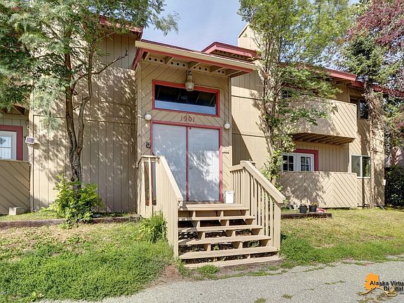 Nice solid income producing 4-plex in a desirable rental neighborhood on huge 11,027 SF lot. Freshly painted ext. All 2 bed, 1 bath units. Two upstairs units have vaulted ceilings & fireplaces. 2 downstairs units have fenced backyards. All units have wonderful, private south facing decks. Coin op laundry & tons of paved off street parking. Excellent South Anchorage locale in popular rental area.