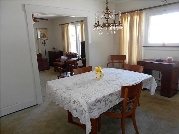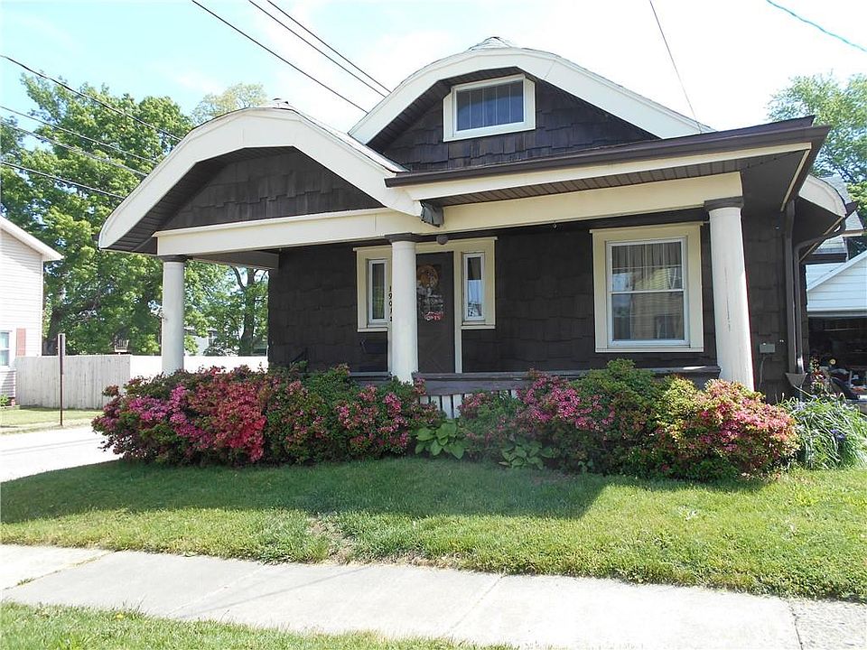 On a corner lot, this cute 2 bedroom, 1 bath Bungalow has tons of charm. The 7x20 covered porch leads to a 13x14 carpeted living room and a 10x14 formal dining room. The kitchen features original tile work from a by-gone day of quality and craftsmanship. (2) sunny bedrooms and a full bath complete the first floor. A finished 10x25 attic w/ new windows provides additional storage and living space. The full basement, off-street parking and the 1 car garage complete the package.