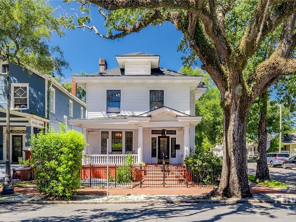 Stunning American Foursquare Jewel Nestled on Corner Lot in Savannah's Cuyler Brownsville District! This 4 Bedroom, 2 Bath Home with Breathtaking Colonial Revival Architectural Details will Charm You From the Moment You Step Into the Iron Gated Front Entrance, Lush Landscaping, & Onto the Expansive Front Porch. Step into the Impressive Foyer Entrance with Soaring 12' Ceilings, Heirloom Quality Light Fixtures, Original Mahogany Flooring, Formal Living Room, Separate Dining Room, Study, & Original Leaded Glass Windows that Fill the Home with Tons of Natural Light. All New Upgrades Include Roof, HVAC, Kitchen & Bathrooms. The 2nd Floor Features all 4 Bedrooms & a Huge Walk Up Attic. Off Street Parking with Shed, Private & Fully Fenced In Backyard, & Gazebo all Make this a Perfect Spot for Entertaining. All of this within Five Minute Walk to The Starland District, SCAD, Dozens of Restaurants, Shops, & Forsyth Park. This Residence is More than Home, it's a Piece of Architectural History Waiting to Be Cherished by its New Owners!