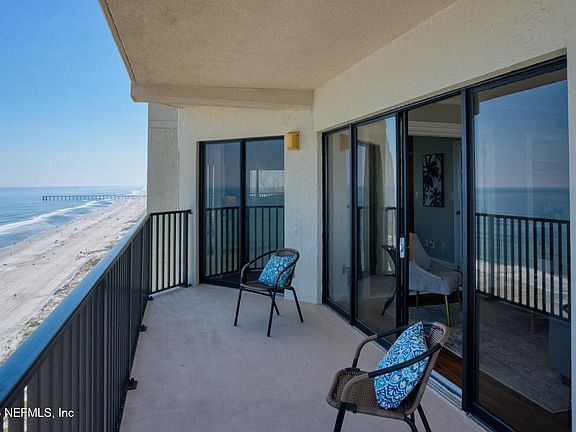 OCEANFRONT. Rarely available CORNER Unit w/Spacious WRAP-AROUND BALCONY. Deed to 1-car indoor garage parking spot (value $35k+) included in the list price. Magnificent panoramic ocean views to JAX Beach on one side and Neptune Beach on the other. See the sunset over the city from the breezeway. Wake up to breathtaking sunrises from your main bedroom & watch boats as they sail by. Enjoy watching the 4th of July fireworks and air shows right from the comfort of your home. Large windows & sliding glass doors fill the spacious interior with natural light. This gated building w/on-site management, is ideally located near shopping, restaurants, entertainment, public library, world renowned Mayo Clinic & Baptist Hospital, Mayport Naval Station, etc. Freshly painted interior w/updated new flooring in hallway, living area & bedrooms, Jen-Air kitchen appliances w/induction stove, and more... you have an assigned storage locker for your beach toys, seasonal items etc. The HOA fee covers the building amenities such as, community room, swimming pool, tennis court, fitness center, sauna, indoor/outdoor social areas, private walkway to the beach, etc., plus your water usage and trash. Buyer to verify anything deemed important. The property's strategic location offers direct beach access, allowing residents to transition seamlessly from home to shoreline within moments. Imagine the joy of coastal living at its best in Jacksonville Beach's most desirable locations!