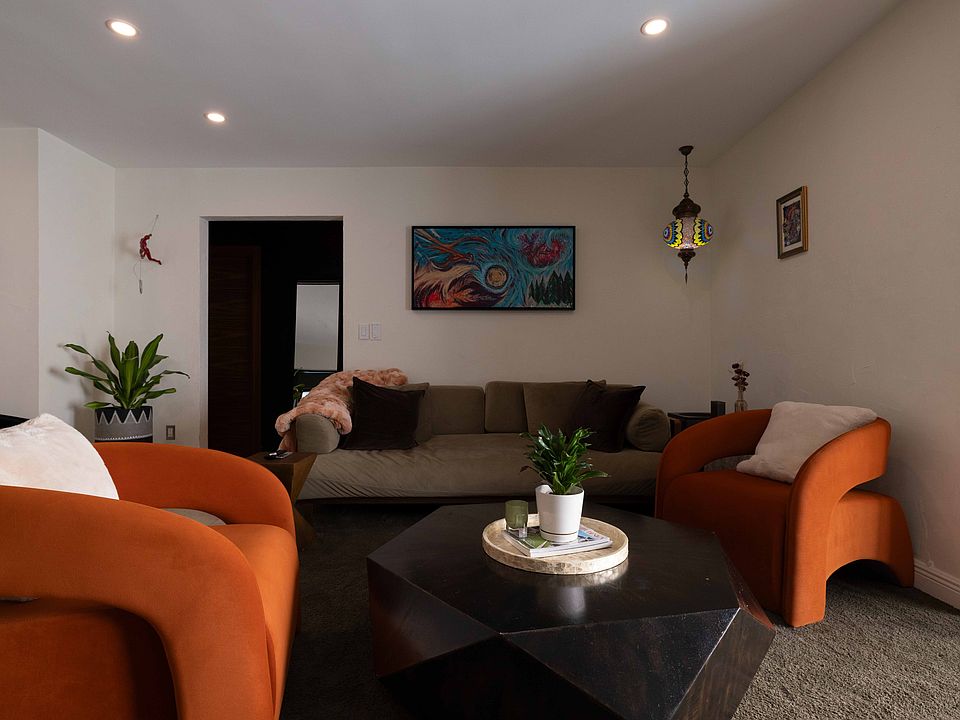 Experience a hi-tech retreat in Hollywood, Florida. Nestled between Fort Lauderdale and Miami, this corner property has everything you need. Enjoy an All-In-One Tonal Gym, Sauna, 150" Laser Projector, PS5, Private Home office with 49" Monitor, Pizza Oven, Charcoal Grill, and a tranquil private garden with waterfront views. 5 min walk to Yellow Green Farmers Market & TY Park. 10 min drive to Hollywood Beach & Hard Rock Guitar Hotel. Welcome to our charming and cozy retreat, nestled in the heart of Hollywood, Florida! This delightful 2-bedroom home promises a memorable stay, perfect for couples, friends, or a small family seeking an unforgettable escape. As you step inside, you'll be greeted by contemporary decor and natural light, creating a warm and inviting atmosphere. The open-plan living space features a comfortable lounge area, equipped with a 150-inch laser projector w/ Apple TV & PS5 for immersive movie nights or streaming your favorite shows. The fully-stocked kitchen with a garden view makes cooking a joy. A 5 stage filter for drinking water means that you can stay hydrated during your trip, without the hassle of buying cases of purified water. The bedroom boasts plush bedding and ample storage, ensuring a restful night's sleep after a day of adventure. Our tranquil outdoor space features a very private backyard, complete with outdoor seating, a charcoal grill, and wood-fired pizza oven. Stay active and rejuvenated during your stay with our state-of-the-art gym, featuring a Tonal workout machine for personalized fitness sessions and a 3-person sauna for post-workout relaxation. The dedicated office space, featuring a 49-inch curved display, ensures you can stay productive and connected if needed. Located just minutes from local attractions and points of interest, you'll have easy access to the best of what Hollywood, Florida has to offer. Our home is within walking distance of the Yellow Green Farmers Market, the largest farmers market in South Florida, where you can indulge in fresh produce, artisanal goods, and vibrant local culture. Dania Pointe & The Seminole Hard Rock, and Fort Lauderdale-Hollywood Airport are all less than 10 minutes away. If you're renting an electric car, you have access to our EV charger as well. Discover the charm of Hollywood, Florida in the comfort of our lovingly curated home, complete with luxurious amenities we can't wait to share our little slice of paradise with you! All furniture, tonal gym, sauna, projector, nespresso, 49" office screen & many other features are included.