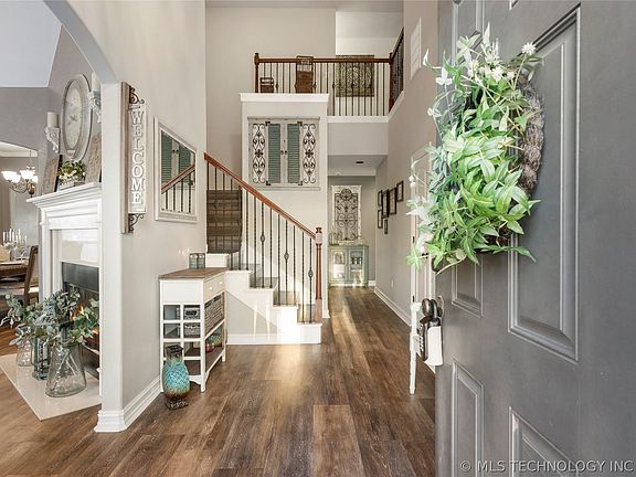 Located on a corner lot, minutes from shopping and dining, this gorgeous Broken Arrow home features 5 bedrooms, 3.5 baths, and 3 living spaces. The large family room features one of two fireplaces, and is open to the kitchen and breakfast nook. Formal living room with another fireplace plus formal dining room. Located minutes from shopping and dining, in desirable Stone Wood Hills neighborhood. New Roof in 2018, New High Efficiency Lennox HVAC units 2018, new luxury vinyl plank flooring throughout, and new double oven. Fantastic floor plan with primary suite downstairs and 4 other bedroom upstairs with a large game room and two full baths. The third car stall garage was converted to a hair salon, but is able to be converted back.