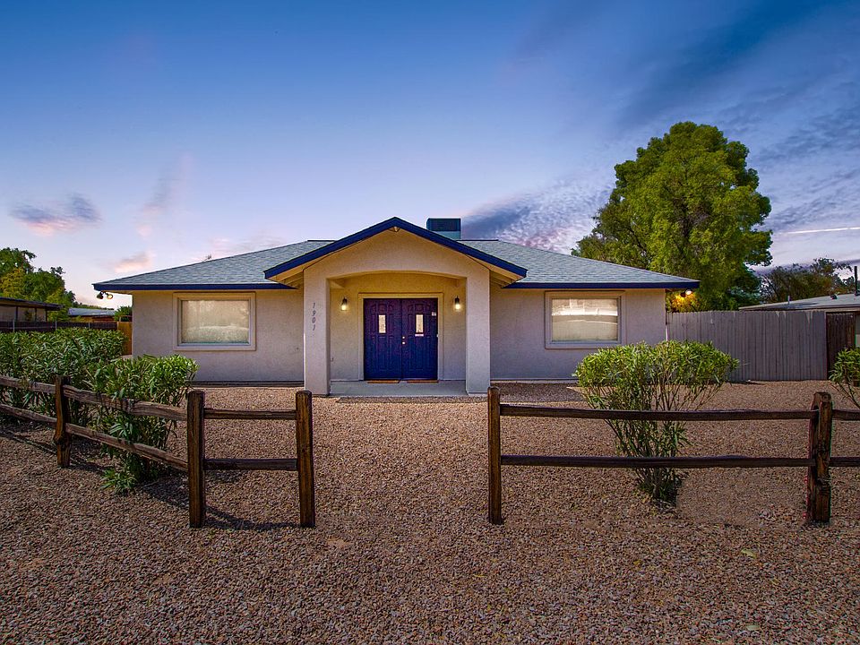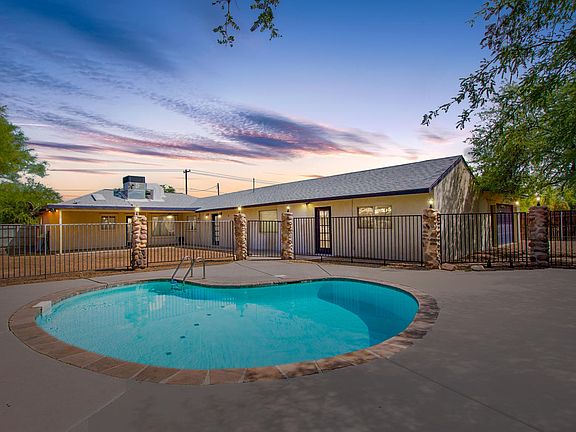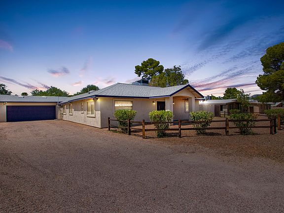 Gorgeous Remodeled Ranch Style Home w/a picket fence & over-sized 2 car garage. Vaulted ceilings, handsome wood ''look'' tiled floors, recessed lighting, ceiling fans, neutral palette, & open floor plan. Formal dining area, upgraded lighting, center kitchen island, granite counters, breakfast bar, SS appliances, skylight, pantry, pendant lighting, & white cabinets w/crown moulding. Perfect gathering place for family & friends. Generous sized bedrooms, plush carpet, ample closets, & 2 upscale baths w/granite counters. Grand master retreats features French door to patio, sitting area, stunning en suite, & walk-in closet. Enjoy the sparkling fenced pool, covered patio, & shade trees. Do not miss out on this desert gem! Accepting offers from $325k-$335k.