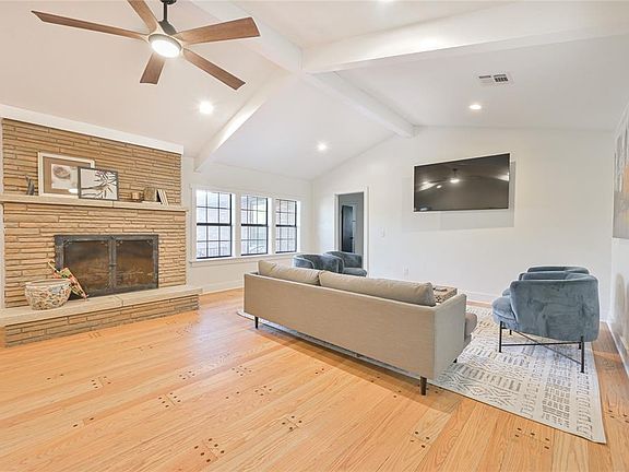 Mid-Century ranch-style vintage home in the Linwood Historic District. This stacked stone remodeled beauty built in 1953 reflects the single story open concept of bringing the outdoors inside thru large windows. The entry patio introduces you to the clean-uncomplicated lines of the Mid-Century home. Refinished peg & plank oak and walnut floors in the living room, dining room and hallways are the canvas for the open space of this home. The remodel includes: windows replaced with energy efficient windows, new plumbing and electrical panel, copper colored gutters, hot water heater replaced, new energy efficient HVAC, wooden privacy fence, kitchen and bath complete remodels, interior/exterior paint, designer light fixtures, raised ceiling with added wood beams in the living room. Not to be ignored is the breezeway between the 2 car garage and home, which adds space for an outdoor living room--add a TV and furniture and have a great place to watch the games--or skip that and park a car there--making this home one with room for 3 cars under cover. The primary bedroom features an enormous designer tiled shower and double vanity. Secondary bedrooms have at least 1 walk-in closet and are very large. Storage in this home is amazing in the hall, living rm, dining room, laundry room, and 2 walk-in pantries in the kitchen. The kitchen has expansive new cabinets with granite countertops and a chef's appliance package. Dining rm is elegant with a fireplace and modern chandelier. The stacked stone fireplace is the centerpiece of the living space. The living room will hold the largest sectional you can imagine. This Mid-century treasure gives you the best of the sleek, practical design in a glorious remodeled package.
