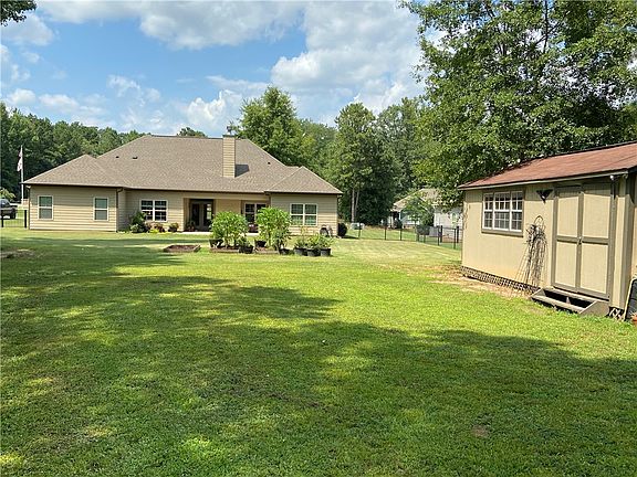 Like new zero entry one story home on 0.72 AC!! Open floorplan with split bedrooms. Split bedrooms allow for extra privacy. Great room features wood floors, custom trey ceilings, and wood burning fireplace with new gas logs currently in place. Nice back patio overlooking huge back yard with raised bed gardens. Formal dining room is open the great room and has lots of natural light and beautiful crown molding! Kitchen is gorgeous and right on trend w/white shaker cabinets, granite countertops, stainless steel appliances, large pantry, dining area & breakfast bar! The spacious master suite is nestled off to the side w/custom trey ceilings, crown molding, his & hers closets & a luxurious ensuite bath featuring soaking tub & custom walk in tiled shower. Three additional guest rooms are on the opposite side of the home & share a hall bathroom w/tub-shower combo. Back yard is huge & mostly fenced in! Nice sized rear patio is partially covered as well as huge air conditioned wired workshop.