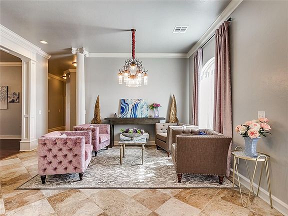 Welcome to Cheyenne Crossing in Edmond a well established subdivision that offers a beautiful entrance with a pond, neighborhood walking trails, a public swimming pool and a private clubhouse. Annual HOA dues are $377.00/year. Master suite has been recently updated, newly remodeled shower, & freestanding tub. Newly updated interior paint in the master, hallway and 4th bedroom (currently used as an office). The home boasts exquisite style and modern character. An open concept floor plan with colonial columns, a stone stacked fireplace, high ceilings and granite counters in the kitchen. Built in gas range cook top, double oven, breakfast nook and a butlers pantry to store your personal wine collection in style (optional). Please note **Seller reserves curtains***
