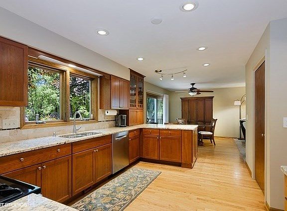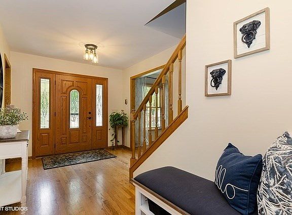 Beautiful custom-built home in Riverwood Estates-Nothing to do but move in! Entire home has been painted in designer shades of Benjamin Moore & hardwood flooring in most of the main level. Formal living room has its own fireplace. Dining room has gorgeous wainscoting & chandelier. Updated kitchen has beautiful cabinets, tons of granite countertops with a breakfast bar, pantry and eating area. Family room has new carpeting, recessed lighting & gas log fireplace. Spacious master suite with tray ceilings, dual fans & walk in closet. Upgraded master bath offers a huge Jacuzzi tub with separate shower and dual custom vanities. All 3 additional bedrooms are very spacious with lots of closet space and additional 1.1 baths have been updated as well. Full finished basement has new carpet, tons of space & baseboard heat. Back yard is very private & perfect for entertaining with meticulous landscaping, a two tier deck, patio/firepit combo & shed with electric. Easy access to the Fox River Trail
