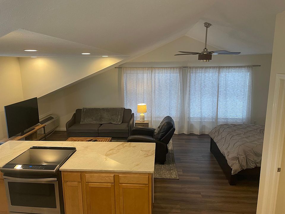 Fully furnished studio apartment. Recently remodeled. New granite counter tops and island. Located close to downtown, Mass Ave, IUPUI, and IU Health campus, and Methodist. Fully furnished. All furniture, cookware, bath towels etc. Includes a one car garage that is connected. All appliances are included, refrigerator, oven/range, dishwasher, garbage disposal, and washer and dryer. Has a walk in closet and large bathroom. Open to shorter lease terms. All utilities are included in the price of rent. No pets. No smoking.