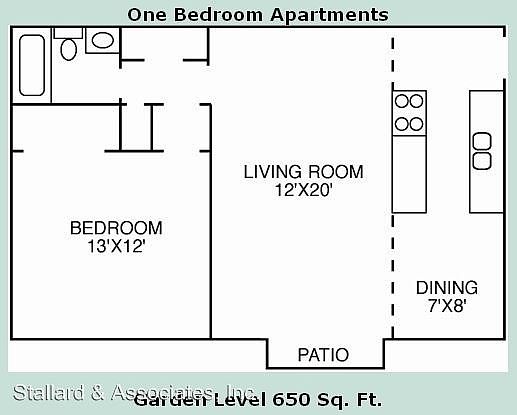 - Total interior livable area: 650 sqft