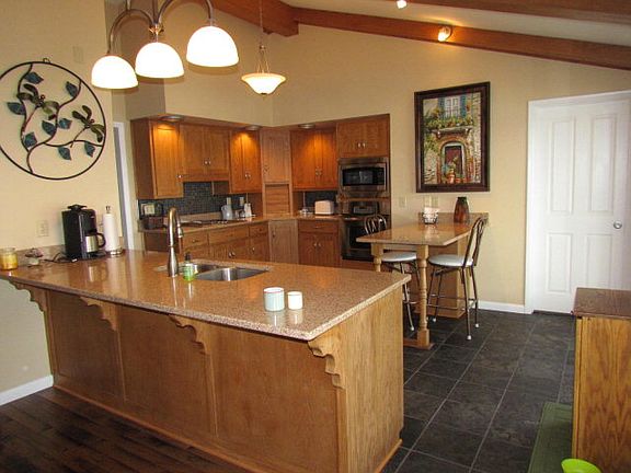 Fantastic home with XL open concept kitchen/dining/living space upstairs with wide open views of the lake throughout. Remodeled kitchen with Quartz counter-tops and quartzite stone tiles. New hardwood floors in living room. As many as 5 bedrooms total including spacious masterbed and bath off of large walkout family/rec room and XL water-view patio. Additional kitchen and wet bar on lower level, fireplaces on both floors all on this secluded main lake lot that must be seen to appreciate!