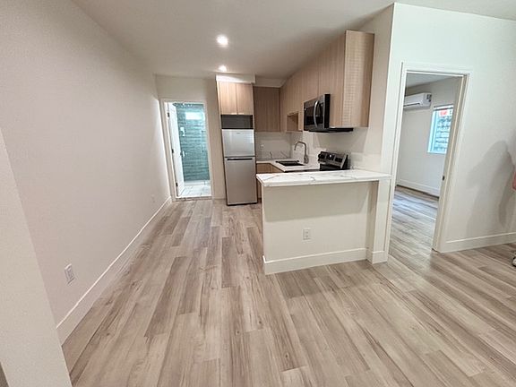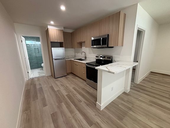 Welcome to 1901 Scott Road Road Apt #101. Burbank, Ca, 91504 This brand new upscale one bedroom, one bath apt comes with new stainless steel appliances, modern quartz countertops and cabinets, brand new luxury vinyl flooring. There is a one car garage with automatic door included. This apartment is on the first floor for convenience and comes with central Air/ Heat and all utilities are included in the rent. Recessed lights throughout. Great location in Burbank and close to shops, public transportation, and restaurants. Owner pays for Water, Electricity, and Trash