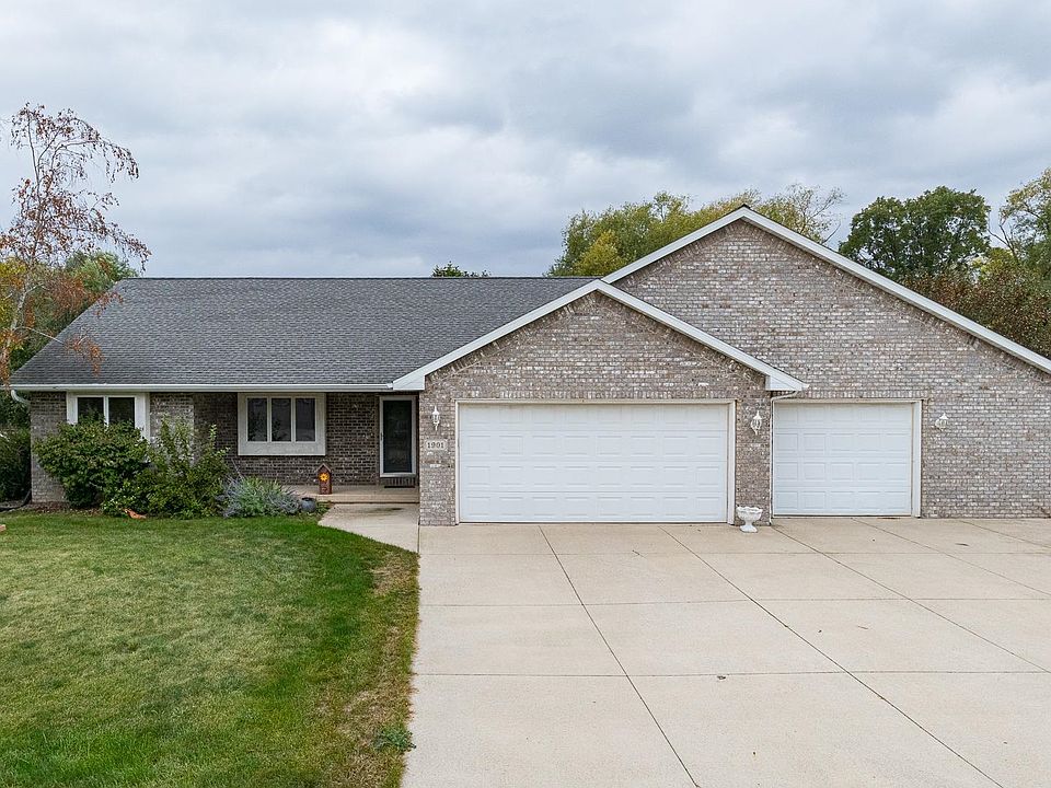 Finally, the one you've been waiting for! This roomy split bedroom ranch sits at the end of a court, boasting a delightful 4-seasons room at the back of the house, complete with a cozy gas fireplace and covered porch. You'll love the generously sized heated garage, featuring an impressive 45-foot depth on one side. Inside, the chef's kitchen showcases beautiful oak cabinetry, tile flooring, tile backsplash and granite countertops and a center island for culinary and baking creativity. Enjoy the added comfort of heated tile floors in both the main and primary bathrooms. All appliances are included, all you need to do is move in.
