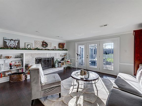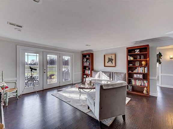 burning freplace. Fabulous, updated kitchen with abundant 42-inch white cabinetry, granite counters, center island & stainless-steel appliances. Huge master suite with updated bath. Also, dual zoned HVAC system. Eight stall Morton barn with tack room, wash bay,