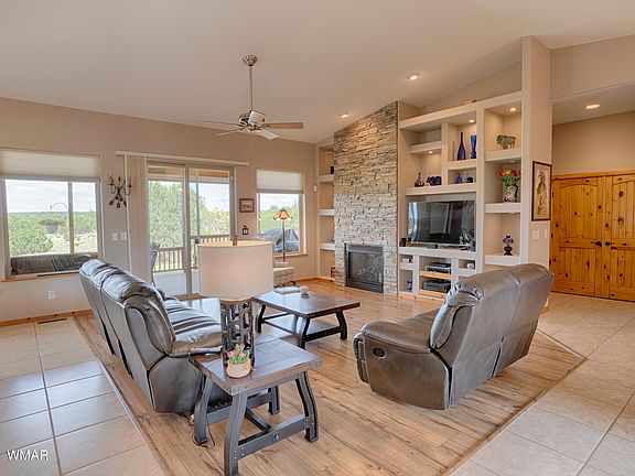 VIEWS and LAKE Access! TRUE PRIDE OF OWNERSHIP. This exquisite home has beauty, peace & privacy. 2 beds and 2 baths PLUS a den w/ built in crafted TV/bookcase. Large Great Room w/ open concept & ceiling to floor stacked stone gas fireplace. Gorgeous granite counter top & lots of cabinets & counter space. HUGE windows w/ amazing views and lots of light. Master bath is a dream w/ cabinets space/counter space and 2 sinks + huge walk in shower with 2 shower heads. Large covered back deck that is beautifully landscaped. Turf grass and the entire outside is 'easy' care. Large shed on the property too. Lots of parking space. NO HOA DUES - Has LAKE privilege's and lake access for boating or fishing. Silver Creek Golf Club and Grill- public course is just around the corner Read 'more
