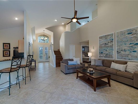 Welcome to 1901 Timarron Way, a rarely available tranquil lake front property in beautiful Pelican Marsh! The two-story open concept Spinnaker plan features soaring cathedral ceilings in the foyer, great room, kitchen, and dining area with pocket sliders that open up to the pool/spa deck overlooking long scenic views of the lake. A private office with vaulted ceiling & glass french doors, master suite, guest bed/bath suite, and laundry complete the first floor. The second floor offers open media loft overlooking the great room, plus a full third bed & bath. Well maintained and ready for your personal touch, this home is perfectly situated within Pelican Marsh. Enjoy newly renovated clubhouse amenities including tennis, fitness center with state of the art equipment and group classes, spa, bocce ball, lounge areas, and outdoor playground. Scenic sidewalks run throughout Pelican Marsh, offering a fantastic setting for walks and bike rides. Benches along the way offer the perfect stops to relax & admire idyllic lake views and sunsets. Optional Pelican Marsh Golf Club Golf (equity & non-equity) and Dining memberships available! See supplements for all 2019 Club options & dues.