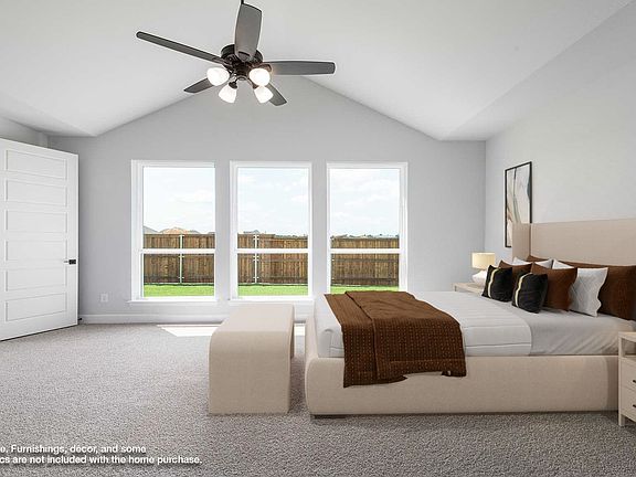 MOVE-IN READY! Step off the front porch into the grand entryway boasting a curved staircase and a 19-foot ceiling. The formal dining room is at the entrance of the home. Adjacent to the dining room is the home office which includes double doors for additional privacy. A secluded guest suite down the hallway with a full bathroom allows for guests to have their own space. The two-story family room boasts a wall of windows and warming fireplace. The backyard covered patio is just off the morning area. The kitchen features an island with built-in seating, ample counter space, and an oversized walk-in pantry with plenty of storage. The primary bedroom offers ample natural light from its wall of windows. Double doors lead into the bathroom which features a garden tub, glass enclosed shower, dual vanities, two walk-in closets, and dual access to the utility room for conveniency. Up the stairs you are greeted by an overlooking view of the first floor. The large game room provides space for entertainment along with the adjoining media room and loft area. Two secondary bedrooms with full bathrooms and walk-in closets complete the second level. A three-car split garage completes the home.