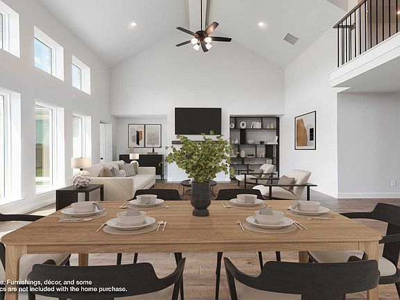 Warming fireplaceLoft areaHome officeBackyard covered patioGrand entrywayWall of windowsFormal dining room