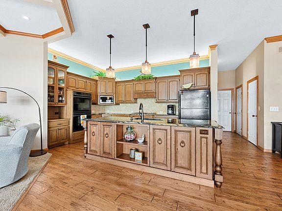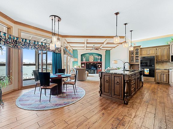 Welcome to your dream home in the prestigious lakefront community of Harbor Isle! This exquisite brick ranch, overlooking the main body of the a picturesque 95-acre lake teeming with over 20 different types of fish, offers an unparalleled waterfront lifestyle. Boasting endless opportunities for water recreation, whether it’s jet skiing, boating, or fishing, this home truly epitomizes lakeside living and feels like a year-round vacation. Located on the east end of the main lake, this gem offers spectacular lake views throughout, visible from the large picture windows adorning the back of the home. Step through the elegant arched front doorway into a stunning entryway that opens up to a spacious floor plan with soaring 10-foot ceilings, sun-soaked living spaces, exceptional millwork, and pristine hardwood floors. The main floor living area is designed for comfort and elegance, and an informal dining area with stunning lake views and access to the covered composite deck. Well suited for any cook, the spacious updated kitchen wood cabinets, an oversized center island, gorgeous pendant lighting, double ovens, and microwave, under/above cabinet lighting. Retreat to the luxurious primary suite featuring a coffered ceiling with rope lighting, large windows, and direct access to the deck. The opulent bath is designed for ultimate relaxation, an expansive vanities with dual sinks, a spacious glass shower, private toilet, and an enormous custom-designed walk-in closet. A second bedroom and hall bathroom complete the main level. Entertaining is effortless in the true walk-out basement with a beautiful pool and patio waiting you and the access to the sand beach and 95 acres of beautiful blue water for your enjoyment and relaxation. The basement is equipped with its 9 ft ceilings, generous family room with a gas fireplace, separate game area, and a wet bar complete with space for a full-size refrigerator, The basement also includes 2 additional large bedrooms with one full bath You'll love the seamless indoor-outdoor flow with the inviting covered deck with a ceiling fan, with tempered glass and screened in. Additional highlights include: security system, fenced backyard, sprinkler system, irrigation well, boat dock, and a tile roof. This home is a perfect blend of luxury, comfort, and functionality, all set within the tranquil and desirable Harbor Isle community, minutes from highways with easy access to the entire city. Make this exceptional property your own and enjoy a lifetime of lakeside living!