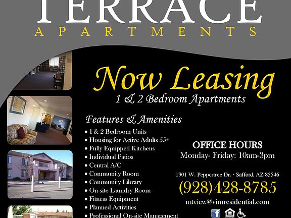 Mountain View Terrace is an affordable housing community for active persons 55+ years! We have 1 bedroom apartments at an affordable rate with many amenities that will be sure to make our community a comfortable and enjoyable place to call home. We have an on-site laundry facilities, library, patios, and a community room with lots of activities for tenants to do. Professionally Managed By: Vim Residential Management, LLC an Equal Opportunity Housing Provider and Employer. Max income must be bellow the 60% average gross market income (AMGI)